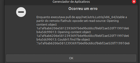 Toda vez que tendo instalar o flatpak do lutris, seja via terminal ou pelo gerenciador, não consigo e sempre aparece esta mensagem