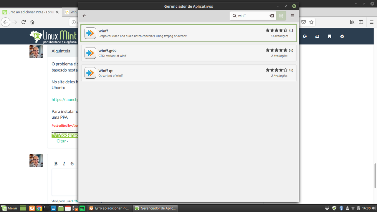 Para instalar o Winff qt basta abrir o Gerenciador de Aplicativos e instalá-lo, não há necessidade de recorrer a uma PPA